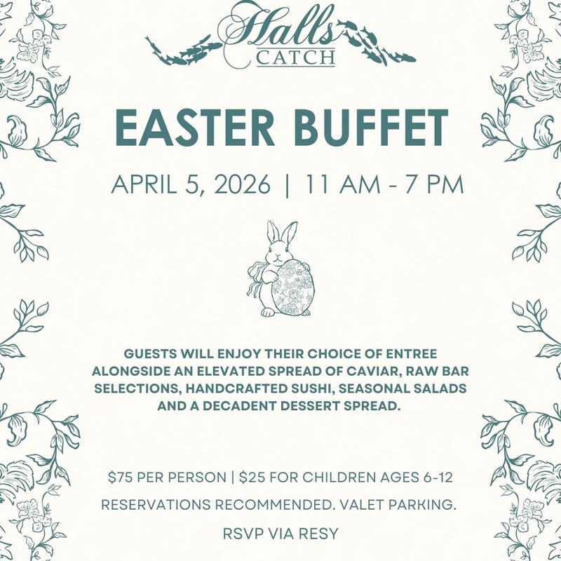 Guests will enjoy their choice of entree alongside an elevated spread of caviar, raw bar selections, handcrafted sushi, seasonal salads, and a decadent dessert spread. $75 per adult | $25 per child aged 2-12